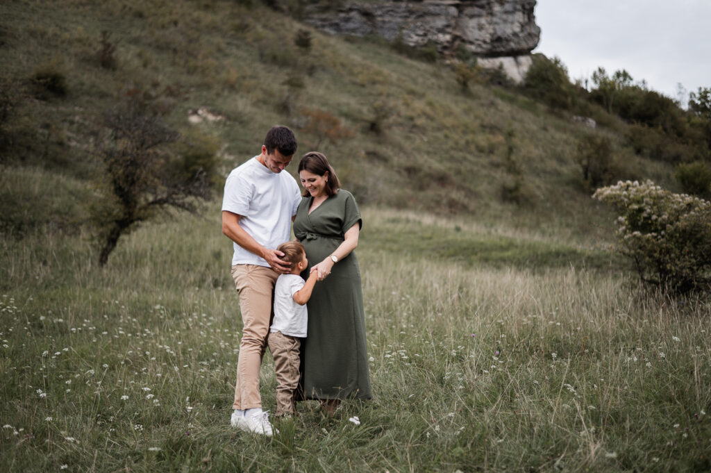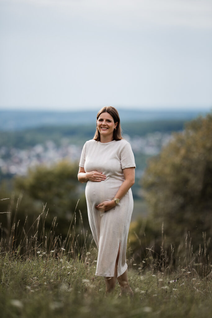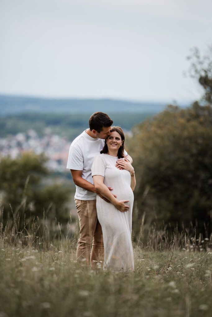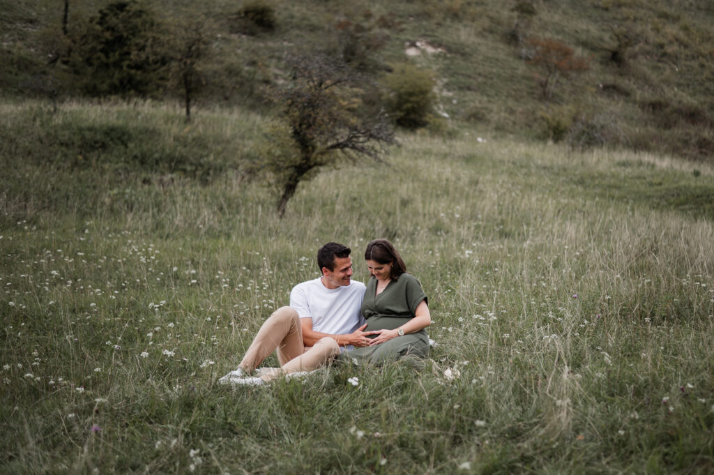 VonadminMichelle und Michael standen bereits schon einmal bei einem After-Wedding-Shooting vor meiner Kamera. Umso größer war die Freude, als sie auch ein Babybauchshooting bei mir gebucht haben. Im Partnerlook mit Jeanshemd und schwarzer Hose beweisen die beiden, dass Babybauchfotos auch ohne Shootingkleid etwas ganz Besonderes sein können.